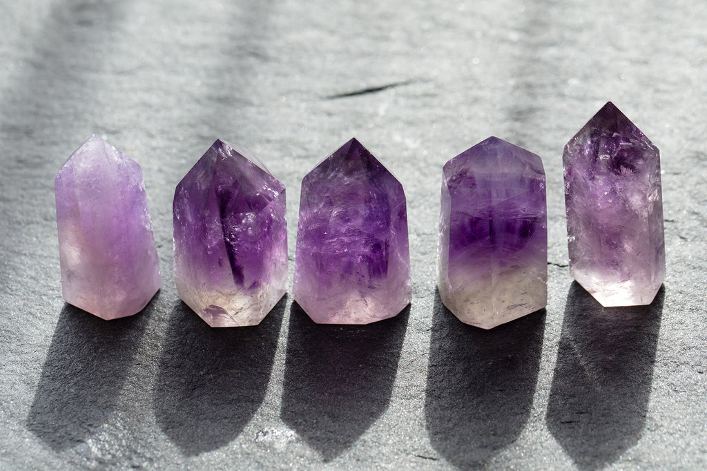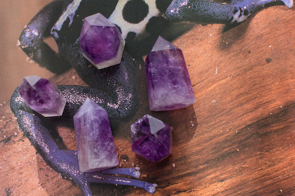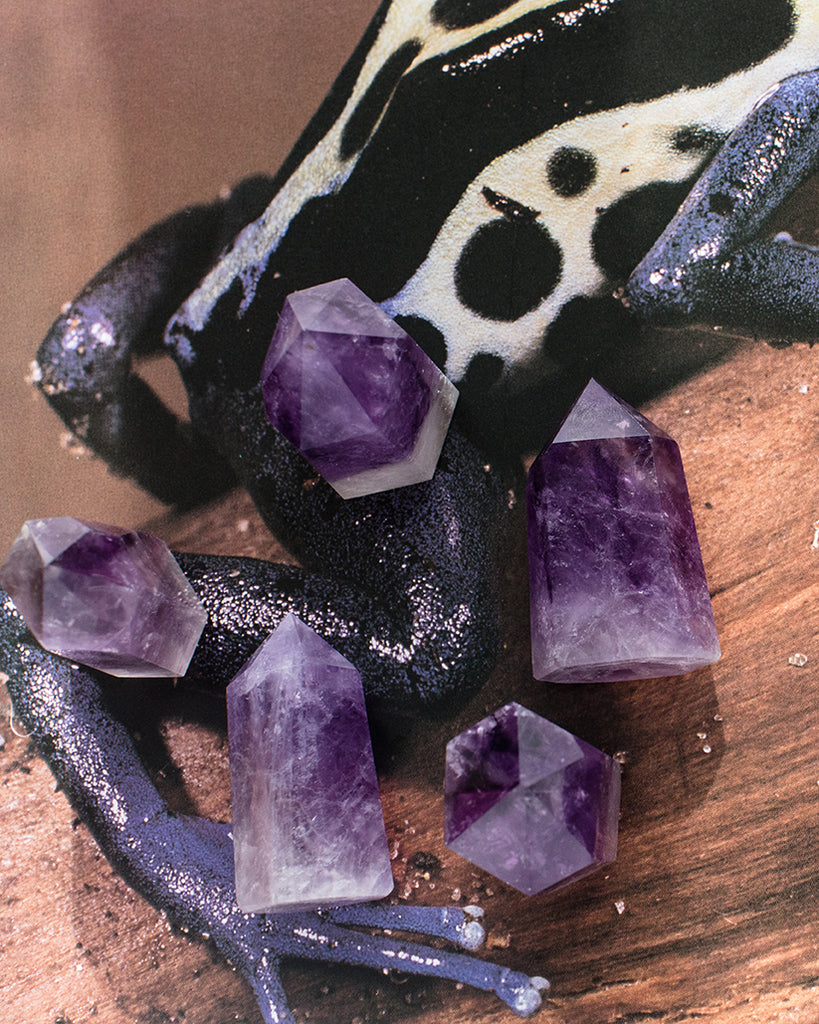 Amethyst is an extremely protective and powerful stone, with a high spiritual vibration that brings healing properties physically and especially mentally. A guardian against psychic attack, it transmutes the negative energy into love. Soothing, and wonderful in aiding the journey to sobriety. Amethyst brings balance between mind, body, and emotion. It is the birthstone for Aquarius and the Crown chakra, purple in colour, which is the top of the head, so again bringing meaning about tranquility of the mind. You will receive one intuitively selected Amethyst tower point, each measures approximately 2-2.25" tall. Or inquire within to make a selection of your own.