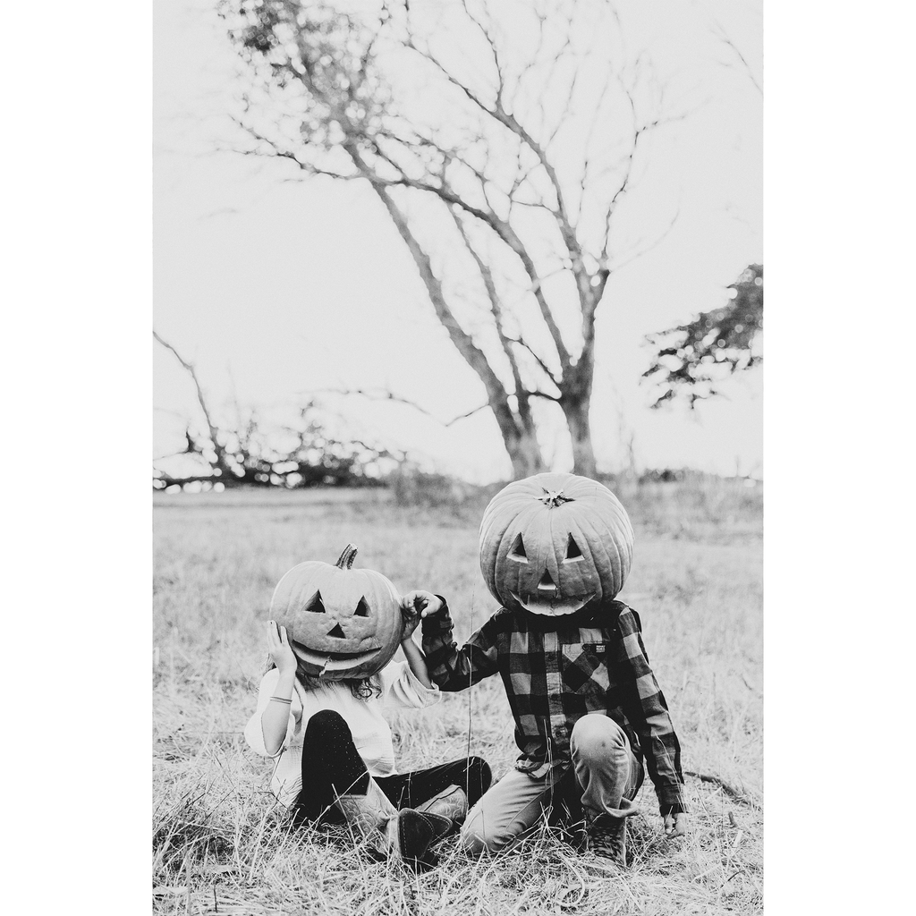 8x10 Black and white photography print by Jessica Maher. Growing up in the mountainscape north of Santa Barbara, Jessica’s love for making and the arts is inherent to her spirit. Her appreciation for the unconventional has set a tone lead by a constant exploration and seeking of process and creation, to fulfill a greater artistic vision. Pumpkin Heads is part of an ironically precious series of children as characters photographed in unexpected scenes, shot in Southern California.
