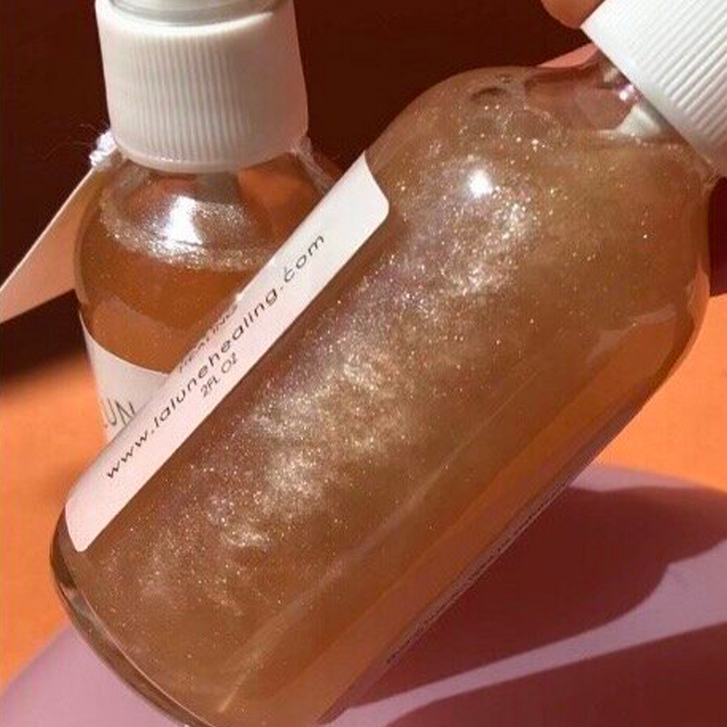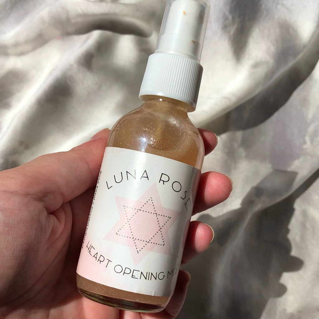 Luna Rose from La Lune healing is a natural Rose Petal and Crystal Infused mist charged with Reiki Healing Energy for your highest heart healing vibrations. Made from 100% pure essential Rose, Sandalwood, and Eucalyptus oils and organic Rosewater and Witch Hazel. This formula is balanced to ground through your Heart's center, to open and connect you to your Heart Chakra. Give it a shake to activate, the Rose Quartz crystals inside stir up a beautiful iridescent glimmer that reminds you to set an intention to increase the magic of this mist. Spray in the air or on the body as needed for a refreshing and pampering self care ritual. Sandalwood is grounding and calming. Eucalyptus is soothing and has antiviral properties known to stimulate the immune system. Roses have one of the highest vibrations on earth and bring awareness and connection.