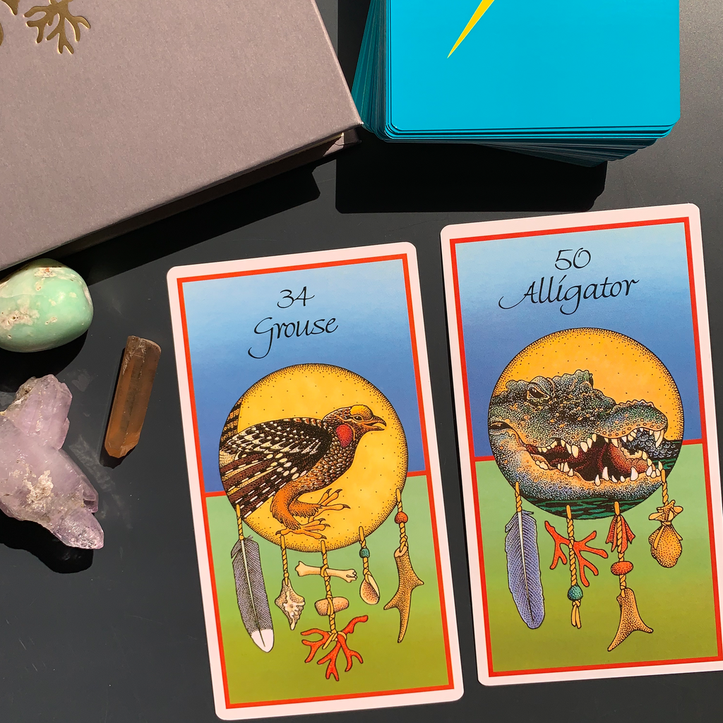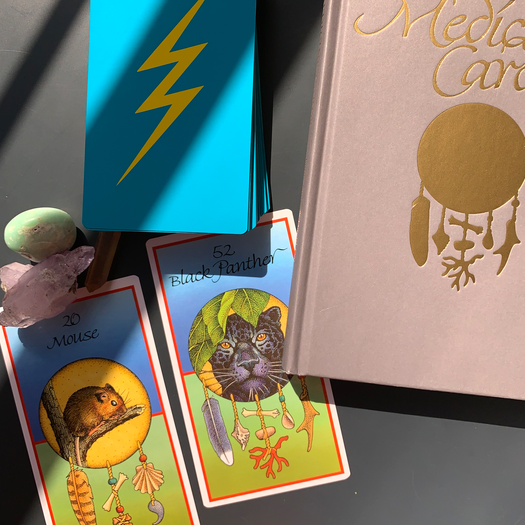 For guidance, affirmations, and inspirations; the character and details of the animals and natural materials illustrated by Angela Werneke make this oracle deck a favorite addition to the cabinet of curiosities for those who love naturalism. Beyond that the accompanying guidebook is hardcover with gold foil. The perfect gift for a Nature Witch. Each card aligns with animal symbology that draws upon ancient wisdom and tradition to teach the healing medicine of animals. Written by Jamie Sams and David Carson, this is the revised expanded edition. Medicine Cards: The Discovery of Power Through the Ways of Animals set includes a boxed deck with 52 cards, 3" x 5.75", and a hardcover bound guidebook 5.75" x 9".
