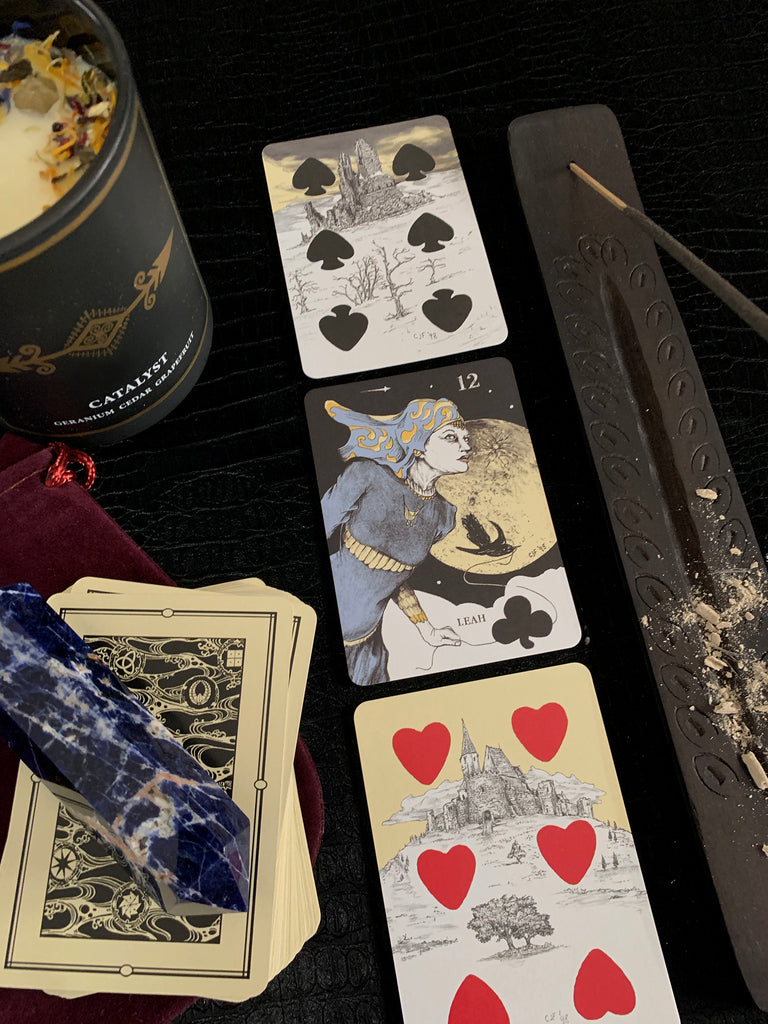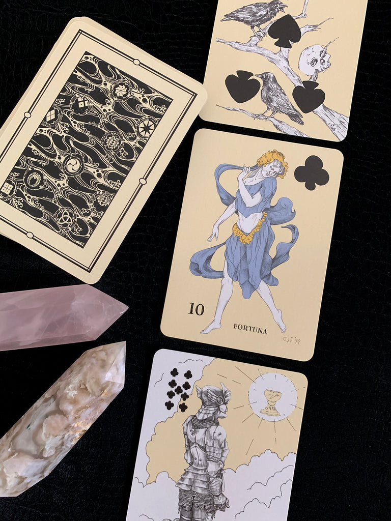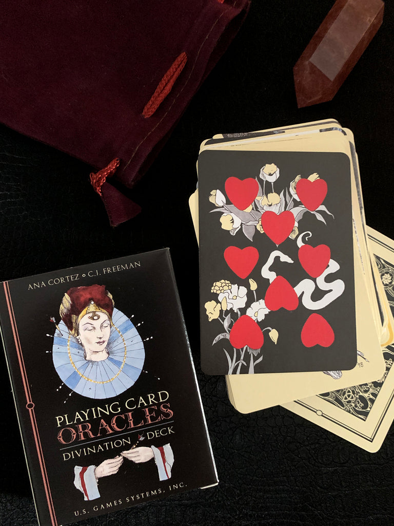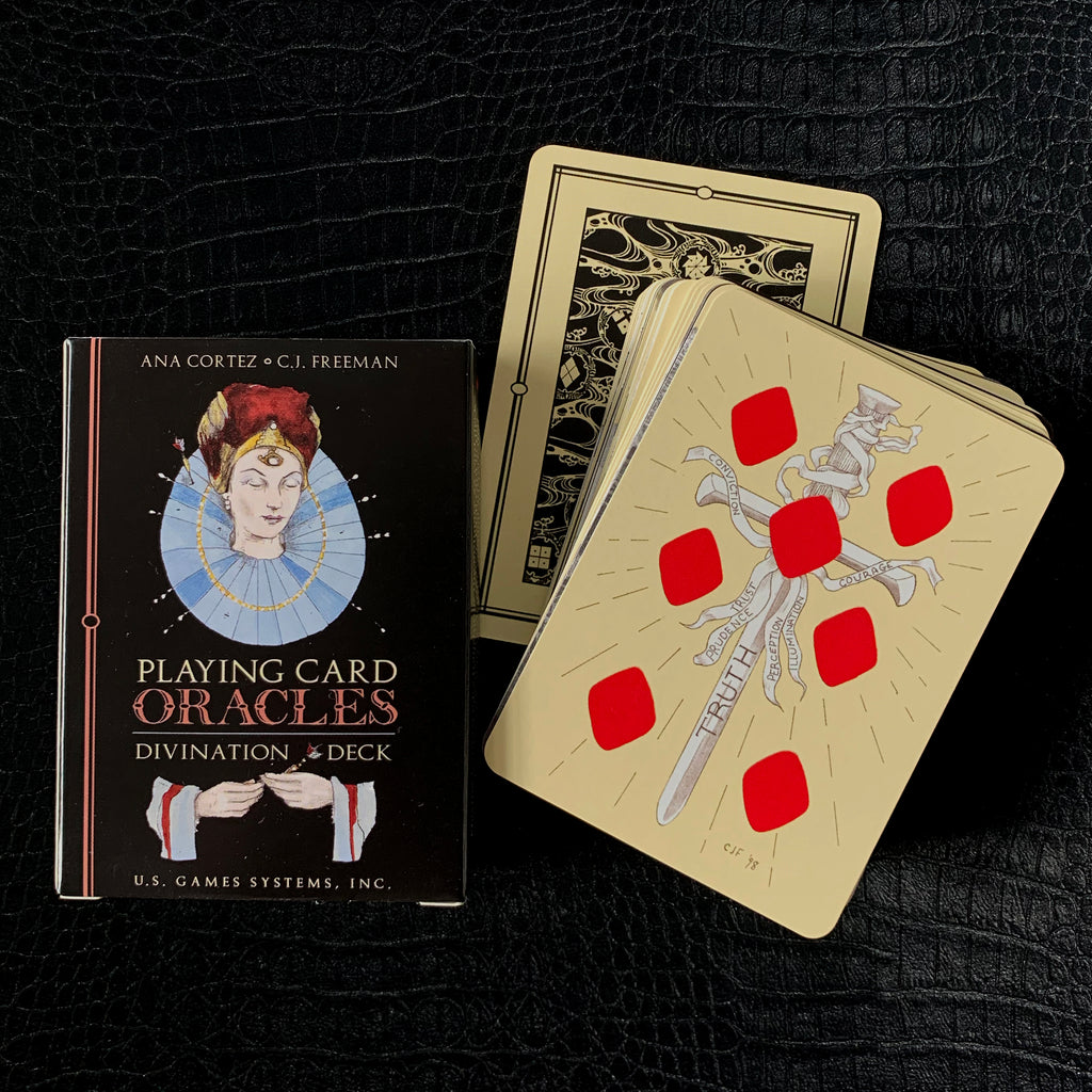 Exploring self-understanding, this unique method of reading will offer guidance in learning to hear and trust one's own intuition to connect with the Divine Power that resides in all of us. Includes who seek 52-Card divination deck based on a traditional playing card deck. Each card features artwork by C.J. Freeman that invokes the mysteries of the ancient oracles. Cards measure 2.5" x 3.5", includes 32 page booklet by Ana Cortez.