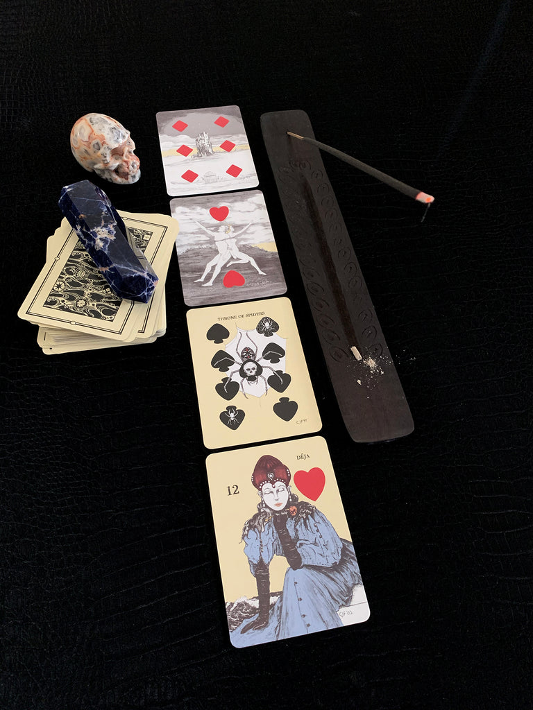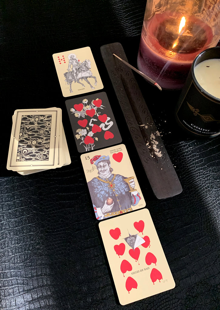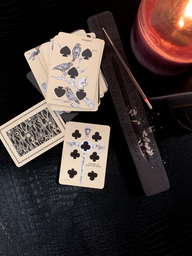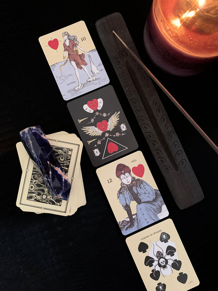 Exploring self-understanding, this unique method of reading will offer guidance in learning to hear and trust one's own intuition to connect with the Divine Power that resides in all of us. Includes who seek 52-Card divination deck based on a traditional playing card deck. Each card features artwork by C.J. Freeman that invokes the mysteries of the ancient oracles. Cards measure 2.5" x 3.5", includes 32 page booklet by Ana Cortez.