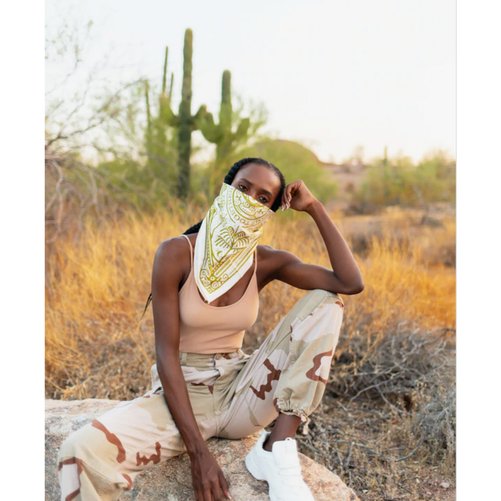 Standard 21 x 21 inch bandana. Machine wash cold with like colors, line or tumble dry, warm iron, do not bleach.