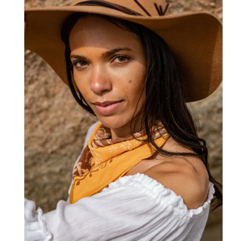 Bandits Bandanas donates 10% of each design's proceeds to different charities chosen by each designer. Free Spirit is Designed by Southeast London, UK artist Sam Dunn, Supporting Parkinson's UK, for health and human services.