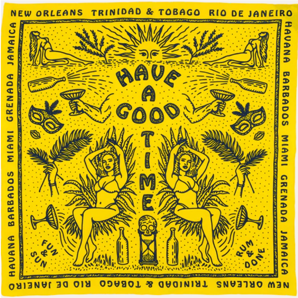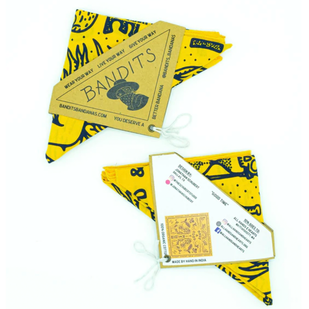 Bandits Bandanas donates 10% of each design's proceeds to different charities chosen by each designer. Good Time is Designed by Dallas, TX designer Jonathan Schubert, Supporting All Hands & Hearts (Mattapoisett, MA).
