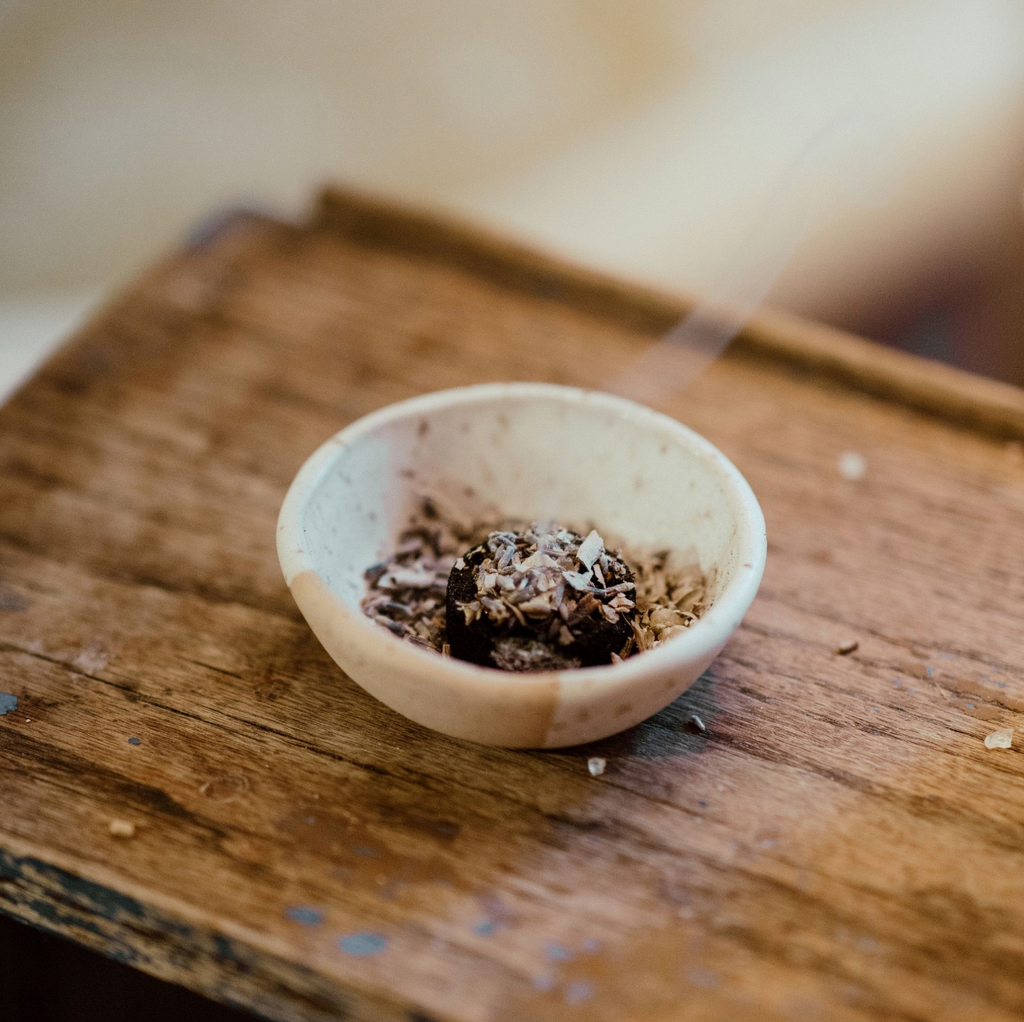 To use, add a big pinch of Burn Blend to a lit charcoal and place on a fire safe surface. Light your cinder in a well ventilated area and set aside for 2 minutes to allow it to fully ignite before adding Sacred Smoke