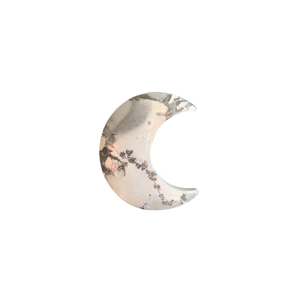 Small hand carved crescent moon, white and black tone maligano jasper.