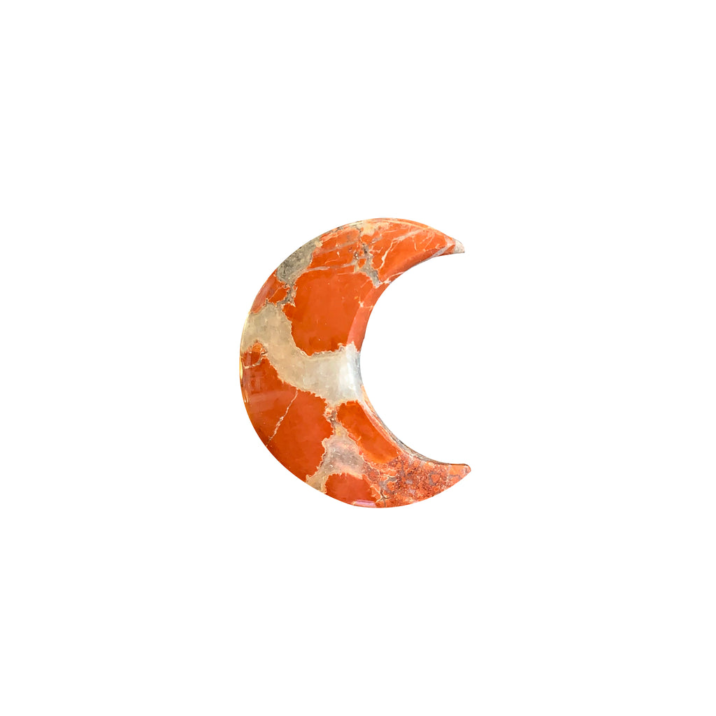 Small hand carved crescent moon, white and black tone maligano jasper.