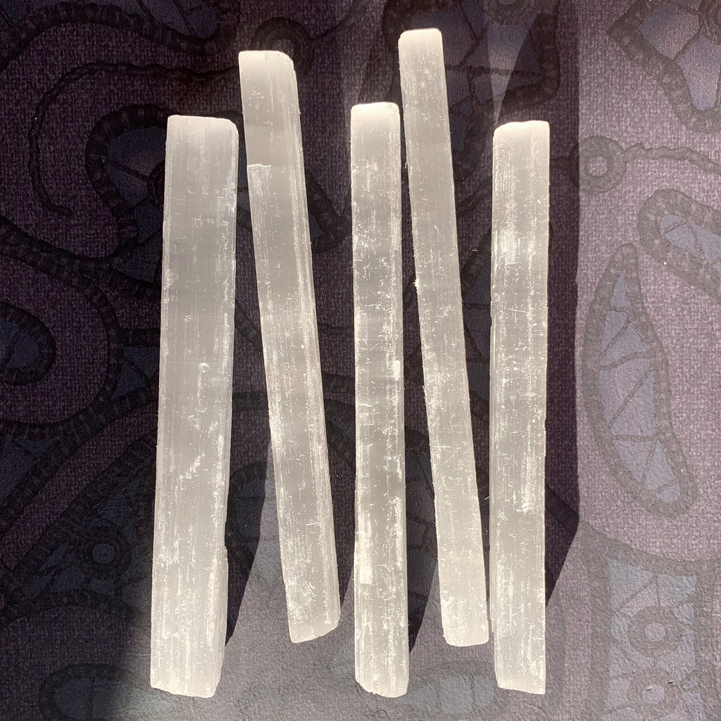 Use raw selenite wands for spiritual cleansing, positive energy, and peaceful healing vibrations. Place under pillows to promote restful sleep. You will receive one intuitively selected wand or inquire within to make a selection. Each measures approximately 6" in length.