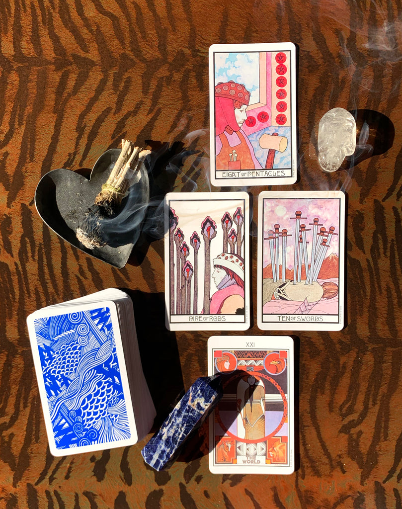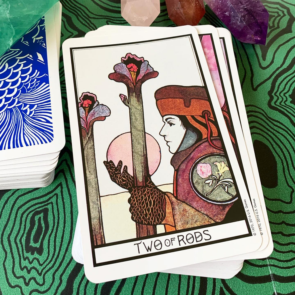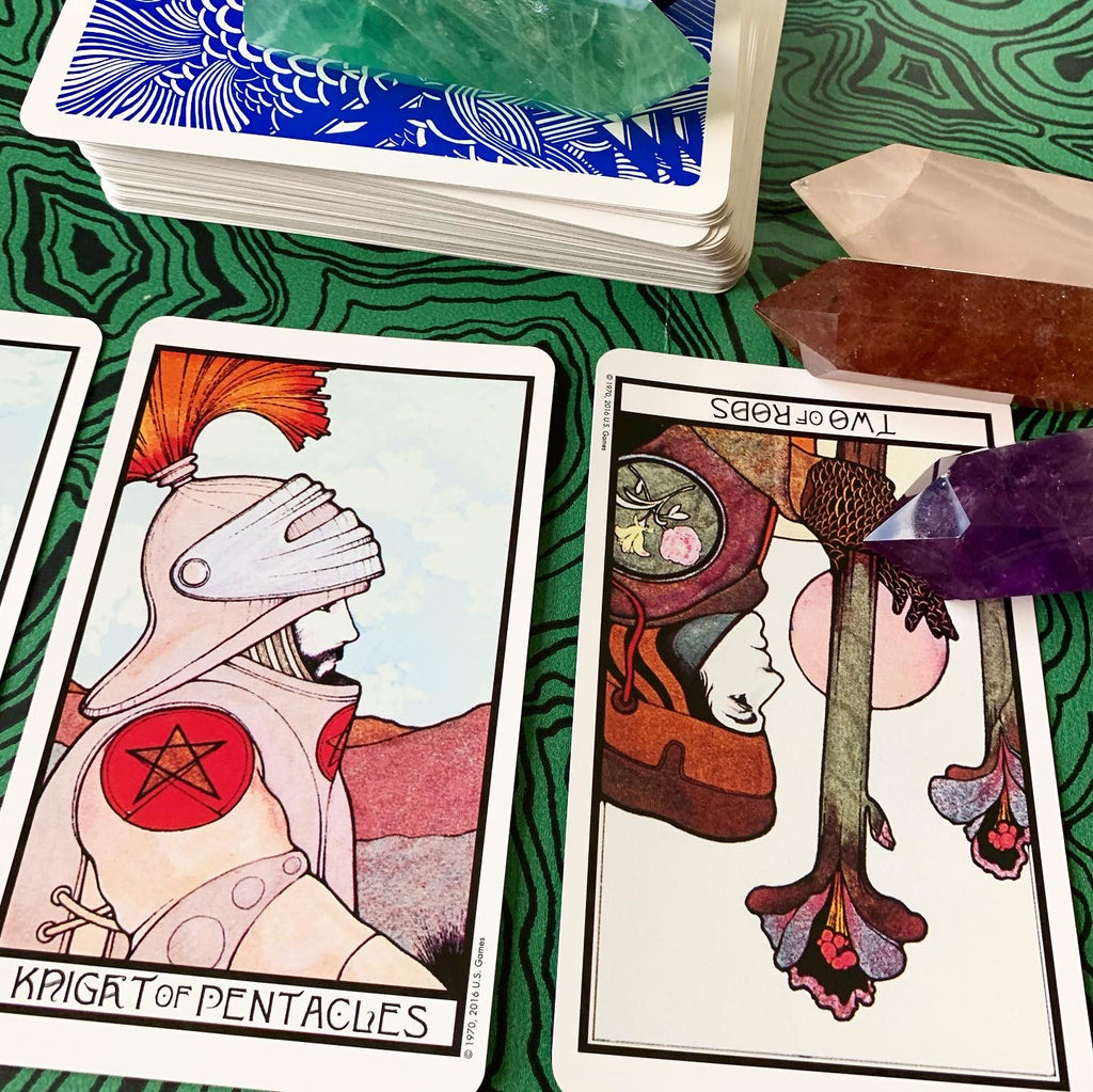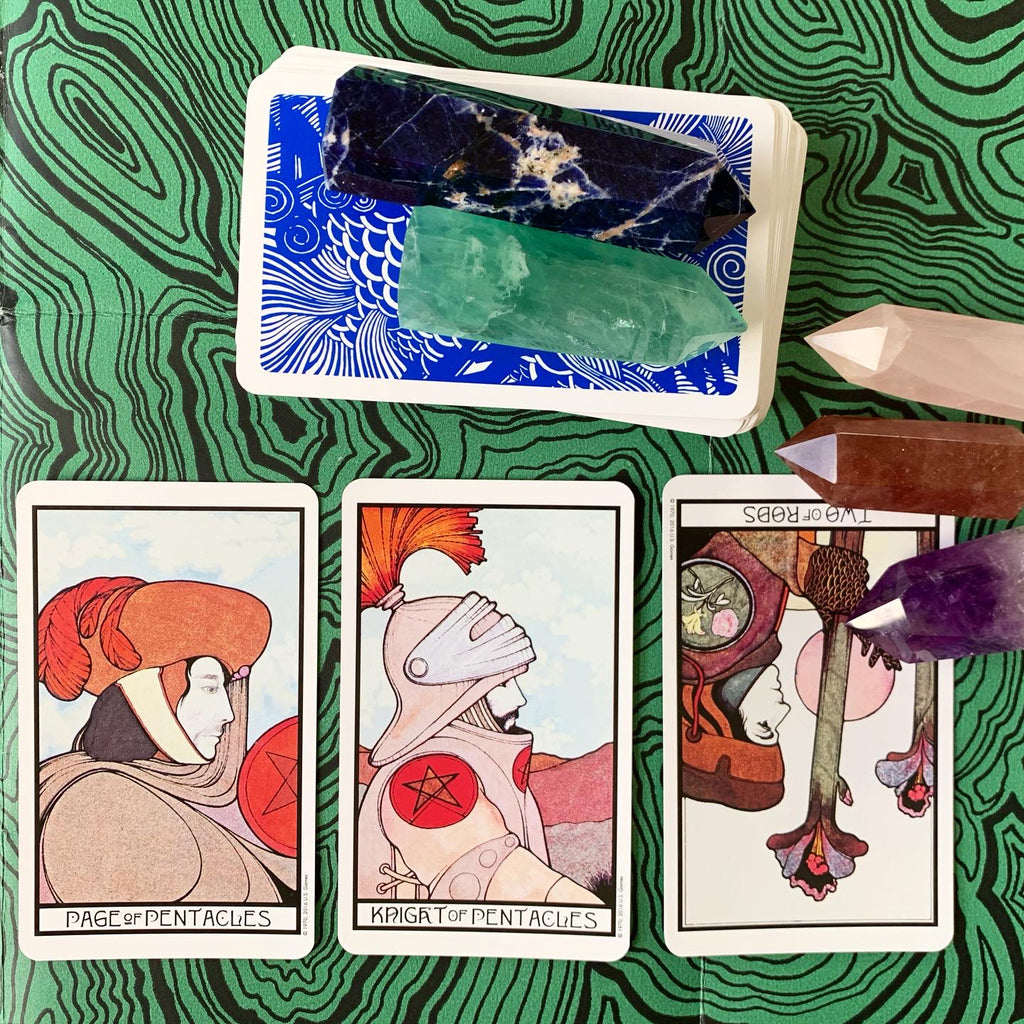 This is medieval tarot symbolism depicted in an Art Deco meets Art Nouveau style of illustrations, created by 1970s illustrator David Palladini; this deck definitely gives retro futuristic and is ironically ahead of its time, a la Bladerunner or Xanadu. Aquarian Tarot includes 78 cards and instruction booklet with meanings. Cards measure 3" x 4.625", made in Italy. If you are looking for a cool deck that's traditional with a vibe and you love retro aesthetics Aquarian Tarot will not disappoint.
